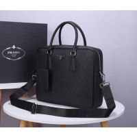 Prada Saffiano Leather Briefcase Black PR066